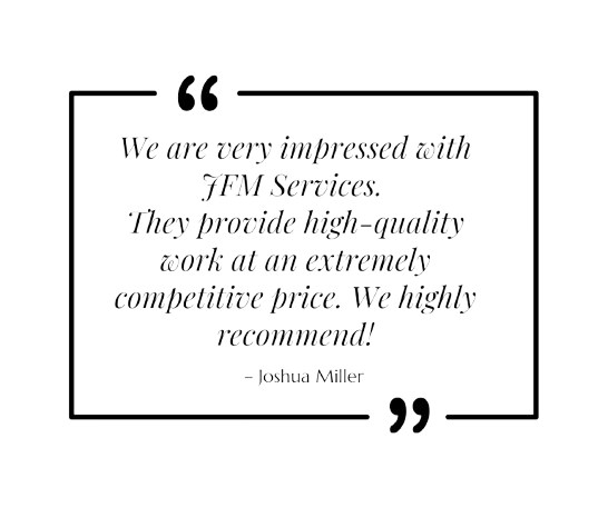 JFM Services is more than just a janitorial service; we’re your committed partner in creating a cleaner, healthier, and more productive work environment. For over two years, we’ve proudly served businesses across Dallas and surrounding cities with customized cleaning solutions that cater to their unique needs and exceed expectations.